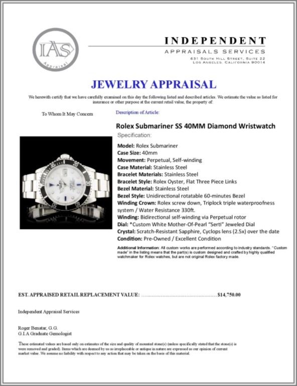 Dial: *Custom White Mother-Of-Pearl “Serti†Great Condition - Shipping notes: We ship 4-10 Business day after the clearance of payment. Tracking numbers are emailed once the package(s) are shipped. Most shipments are sent by FEDEX Priority, UPS Priority, or US PRIORITY MAIL INSURED