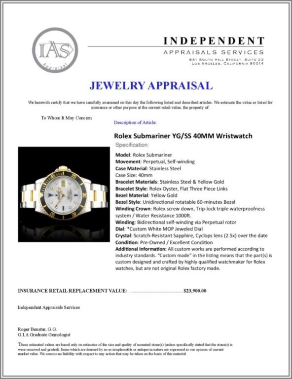 Estimated Retail Replacement Value: $23,900.00Ref: BAS28000Item no.: ARXAA-0024Specification:Model: Rolex Submariner