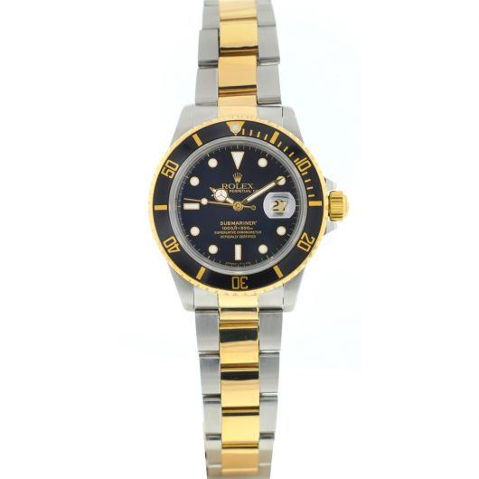 Description : Rolex 16803 Two-Tone Submariner Black Dial Yellow Gold Stainless Steel Watch .