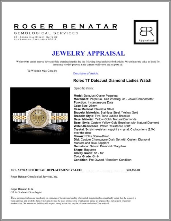 Dial: Custom Champagne Dial / Set with Custom Diamond Markers and Blue Sapphire