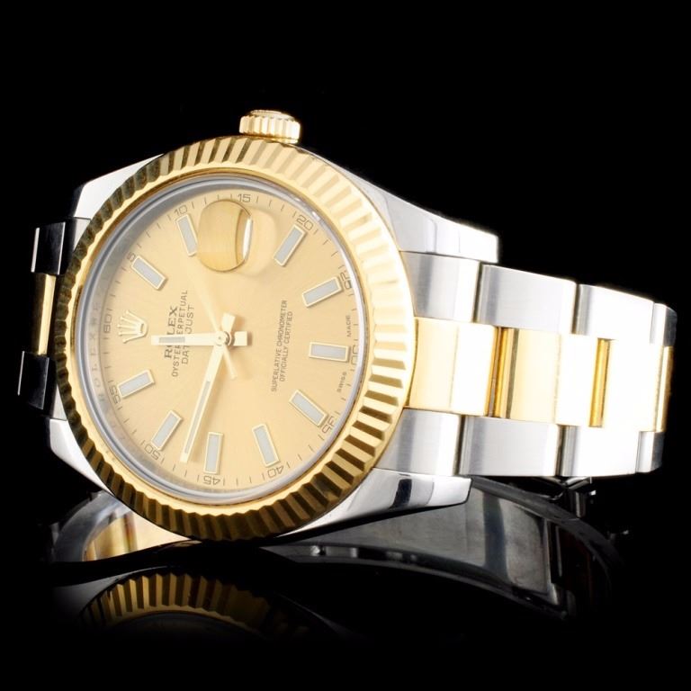 Bezel Style: Rolex Fluted Yellow Gold Bezel