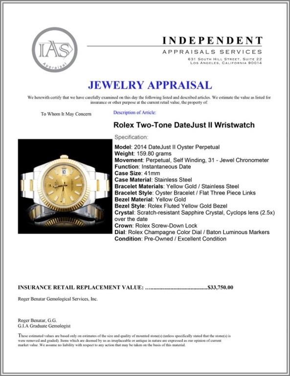 Model: 2014 DateJust II Oyster Perpetual