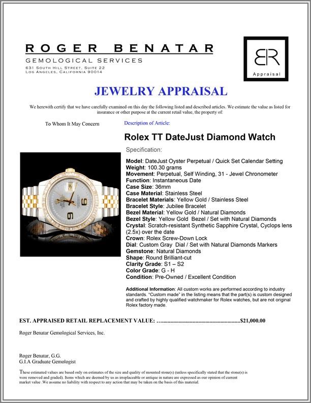 Dial: Custom Gray Dial / Set with Natural Diamonds Markers