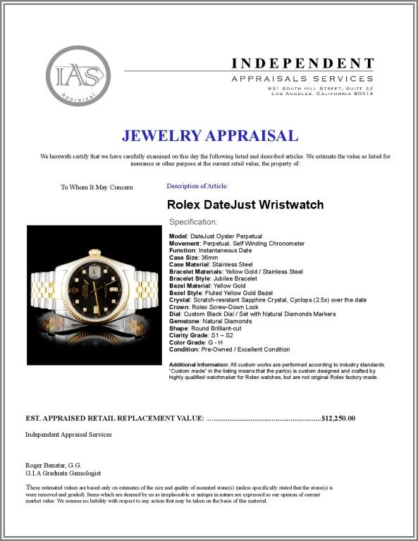 Dial: Custom Black Dial / Set with Natural Diamonds Markers