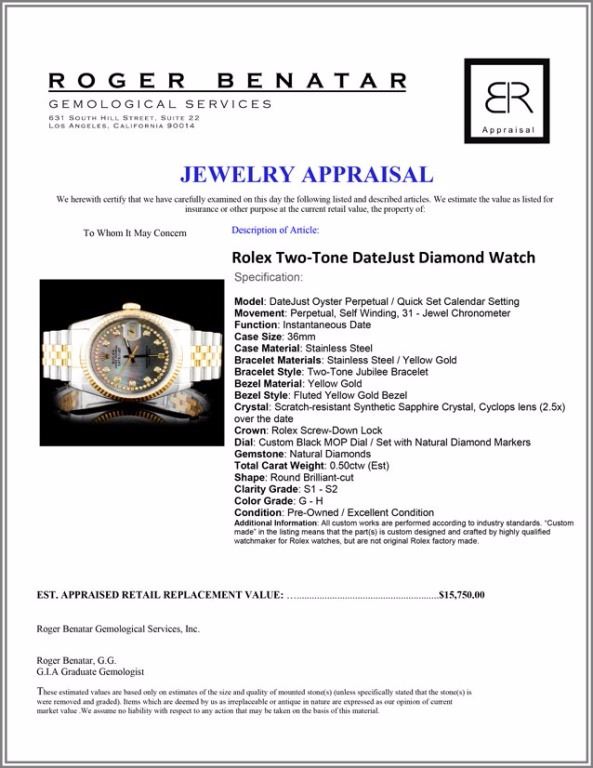 Dial: Custom Black MOP Dial / Set with Natural Diamond Markers