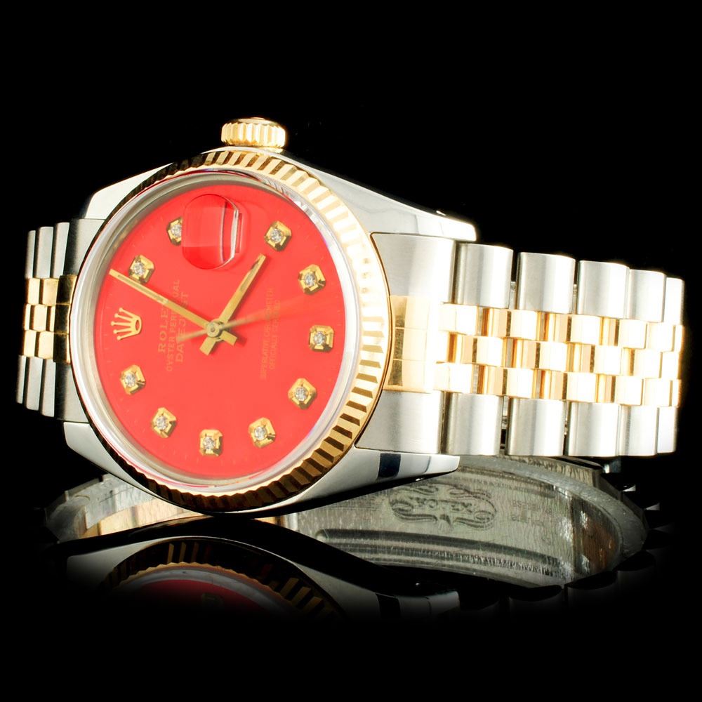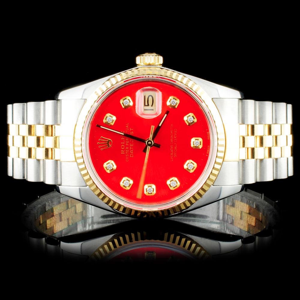 Dial: Custom Red Dial / Set with Natural Diamonds Markers
