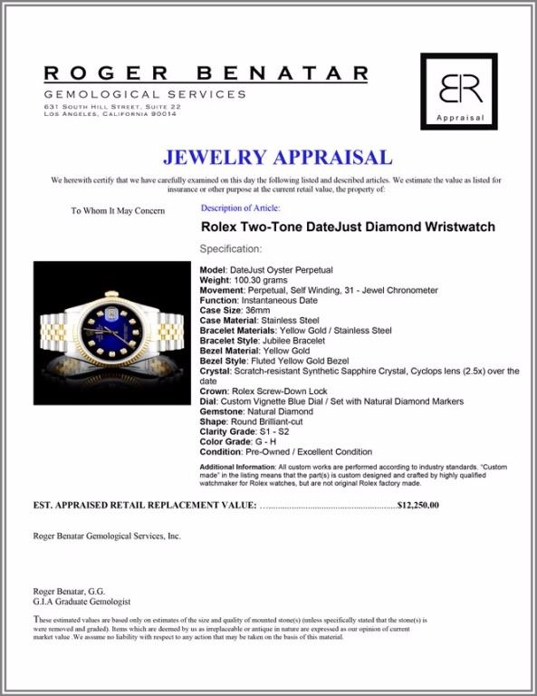 Dial: Custom Vignette Blue Dial / Set with Natural Diamond Markers