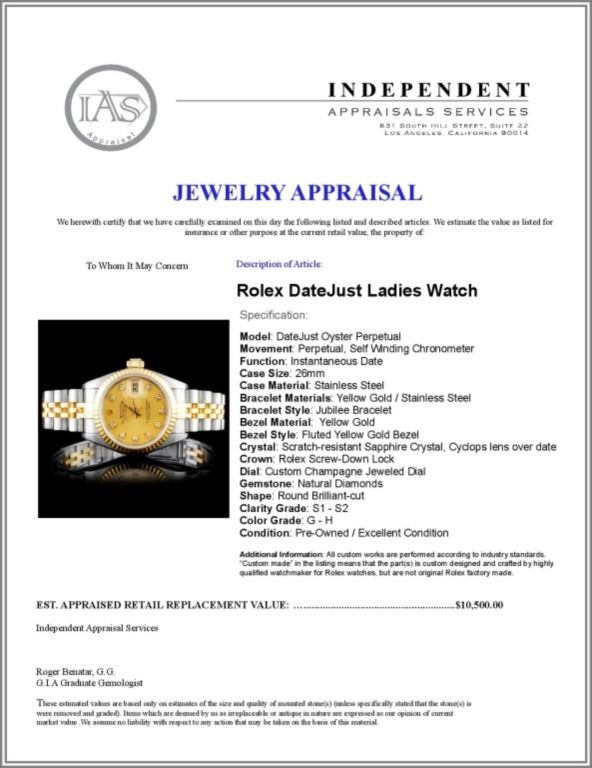 Regarding Appraised Jewelry and Loose Stones - Auctionfarm sends them out to a third party for Retail Replacement Value Appraisals, which are the most common. These types of evaluations are written for insurance needs. This would be the cost to replace the jewelry with an item of equal quality and kind, considered to be the current market price or the replacement value. This type of appraisal is done to protect you in the event of damage or loss of a valuable item. Our appraisals are conducted by independent 3rd Party appraisal firms that utilizes Certified GIA Gemologist. Appraisals should be used for verification of gemstone and/or metal weight, size, and grade only, not actual value. Appraisal value should be considered for insurance purposes only, not actual value, as price varies greatly from retail locations thru out the world. Items should not be purchased with the expectation to resell for appraisal price, or for profit.