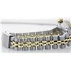 One Ladies Two Tone Rolex Datejust Polished, Serviced & Electronically Tested, 14K Yellow Gold & Stainless Steel Case:26mm, 14K Yellow Gold Crown, Diamond Lugs: Color: G to H, Clarity: SI-VS. Custom Bezel: 18K Yellow Gold Beadset Diamond Bezel, Diamond Count: 32 Diamonds Total Weight .70 Carat, Clarity: Si-VS, Color: G to H. Custom Crystal: Synthetic Sapphire Cyclops Lens. Movement: Automatic Winding Movement Caliber 2030. Custom Dial: Mother Of Pearl With Diamond Hour Markers, Stone Count: 10 Diamonds. Date Window: 3 O'Clock Position Date Display, Non Quickset, Model: 6917 Condition: G-6 Extra Fine. Bracelet: Two Tone 14K Yellow Gold & Stainless Steel Jubilee. Bright Polish. 5.5 Inch Length, Adjustable. Standard Clasp, With Rolex Logo.