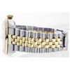 One Mens Two Tone Rolex Datejust Polished, Serviced & Electronically Tested, 14K Yellow Gold & Stainless Steel Case:36mm, 14K Yellow Gold Crown, Custom Bezel: 18K Yellow Gold Sapphire Beadset Diamond Bezel, Diamond Count: 36 Diamonds + 4 Sapphires Total Weight 1.00 Carat, Clarity: Si-VS, Color: G to H. Custom Crystal: Synthetic Sapphire Cyclops Lens. Movement: Automatic Winding Movement Caliber 3035. Custom Dial: Mother Of Pearl Dial Set With Diamond Hour Markers and Baguette Markers On 6 and 9, Diamond Count: 8 + 2 Baguette Diamonds in Dial G To H In Color , Date Window: 3 O'Clock Position Date Display, Quickset, Model: 16013 Condition: G-6 Extra Fine. Bracelet: Two Tone 14K Yellow Gold & Stainless Steel Jubilee. Bright Polish. 6.5 Inch Length, Adjustable. Standard Clasp, With Rolex Logo.