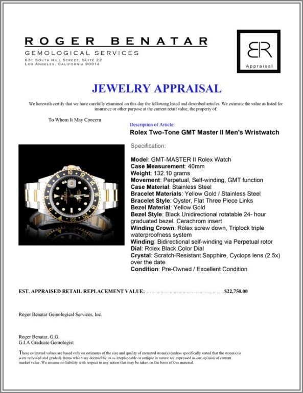 Rolex Two-Tone GMT Master II Men's Wristwatch