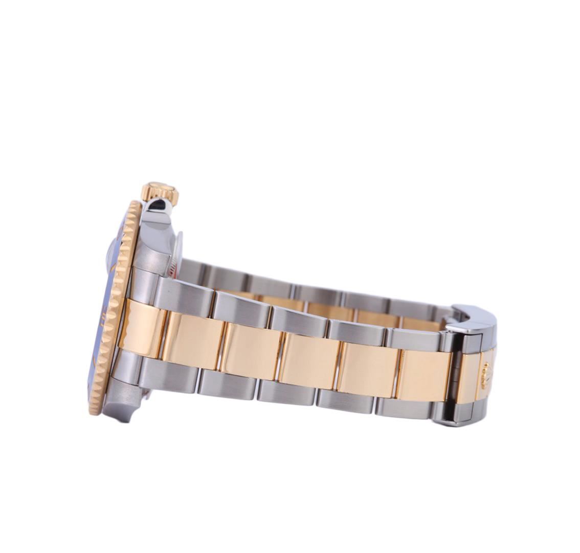 One gents stainless steel and 18KT yellow gold Rolex Submariner wristwatch. Model Name/Number: Submariner 116613. The watch features automatic movement with date, waterproof screw-down crown, scratch resistant sapphire crystal, rotatable diver's ceramic bezel. Case: 18k gold & stainless steel (40mm). Dial: Blue with luminous hour markers. Bracelet: 18k yellow gold and stainless with Glidelock clasp.