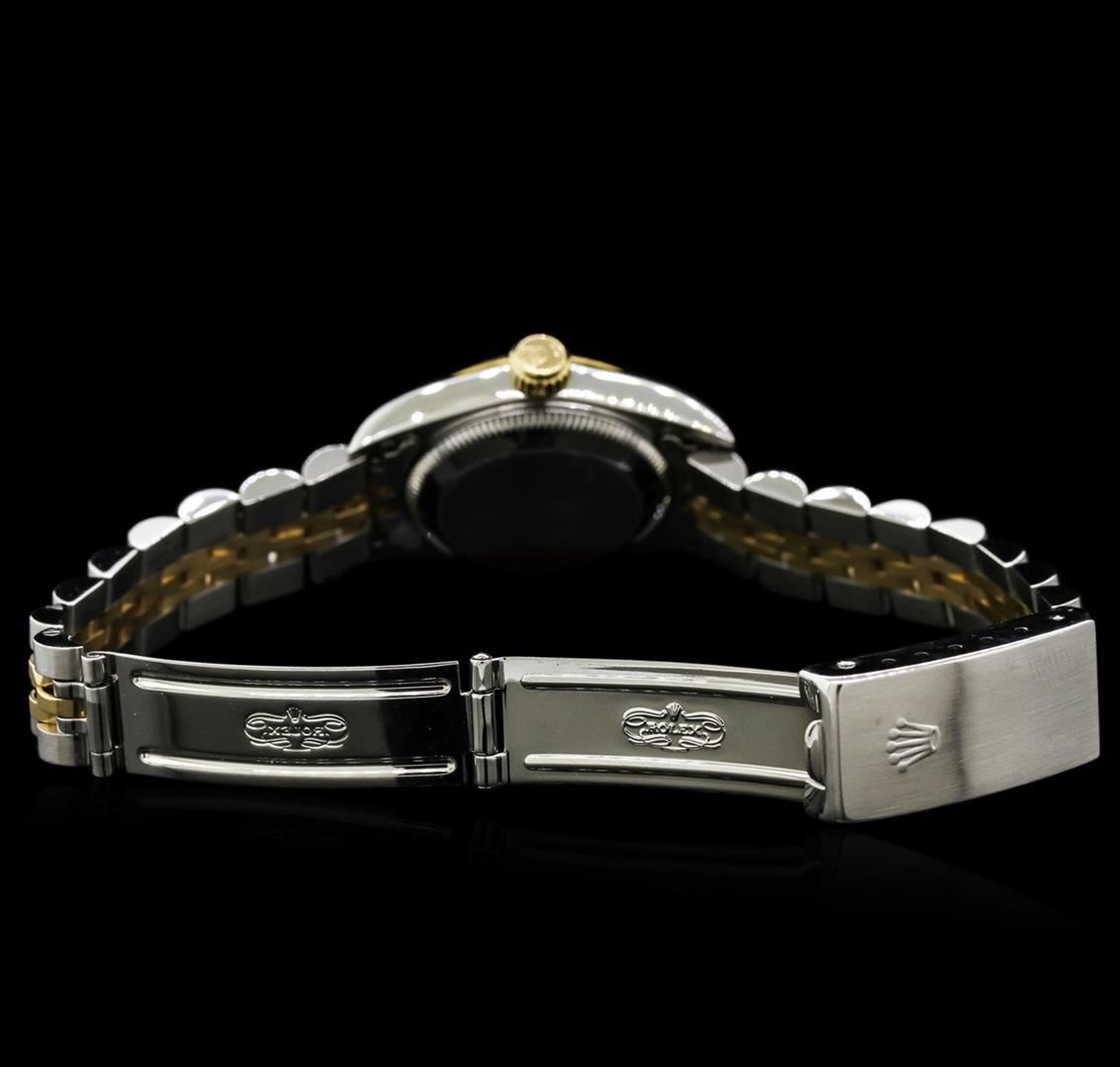 One ladies, hand crafted & machine milled Rolex Oyster Perpetual Model wristwatch electronically tested, Stainless Steel Case: 25mm oyster, 18KT Yellow gold Crown: twinlock with logo, 18KT Yellow gold Bezel: fluted, Crystal: synthetic sapphire lens. Swiss Automatic Movement: superlative chronometer, Dial: Champagne with baton hands, diamond markers, and a bordering minute track, Circa: 1994, Condition: G-6 Extra Fine. Bracelet: stainless steel and 18KT yellow gold jubilee. Six inch length, adjustable. Standard clasp, with logo. Total Weight of Watch 48.66gm. AIG Appraised at $6,880.00.