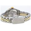 One Ladies Two Tone Rolex Datejust Polished, Serviced & Electronically Tested, 14K Yellow Gold & Stainless Steel Case:26mm, 14K Yellow Gold Crown, Custom Bezel: 18K Yellow Gold Emerald Beadset Diamond Bezel, Diamond & Stone Count: 28 Diamonds + 4 Emeralds. Total Weight .70 Carat, Clarity: Si-VS, Color: G to H. Custom Crystal: Synthetic Sapphire Cyclops Lens. Movement: Automatic Winding Movement Caliber 2030. Custom Dial: Mother Of Pearl Ruby String Diamond Dial, Diamond And Ruby Count: 33 Diamonds + 10 Rubies, Clarity: SI-VS, Color: G to H. Date Window: 3 O'Clock Position Date Display, Model: Datejust. Condition: G-6 Extra Fine. Bracelet: Two Tone 14K Yellow Gold & Stainless Steel Jubilee. Bright Polish. 5.5 Inch Length, Adjustable. Standard Clasp, With Rolex Logo. Comes with a 6 month warranty card.
