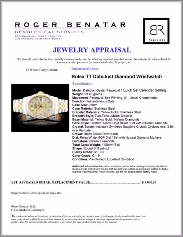 Dial: Rolex White MOP Dial / Set with Natural Diamond Markers