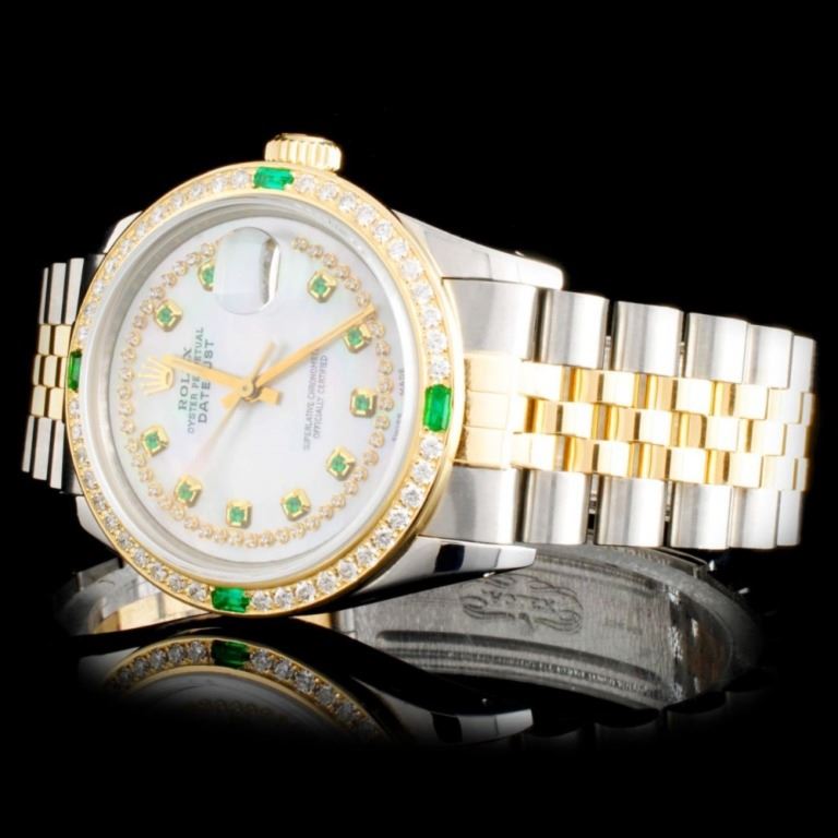 Dial: Custom White MOP Dial with Diamond & Emerald Markers