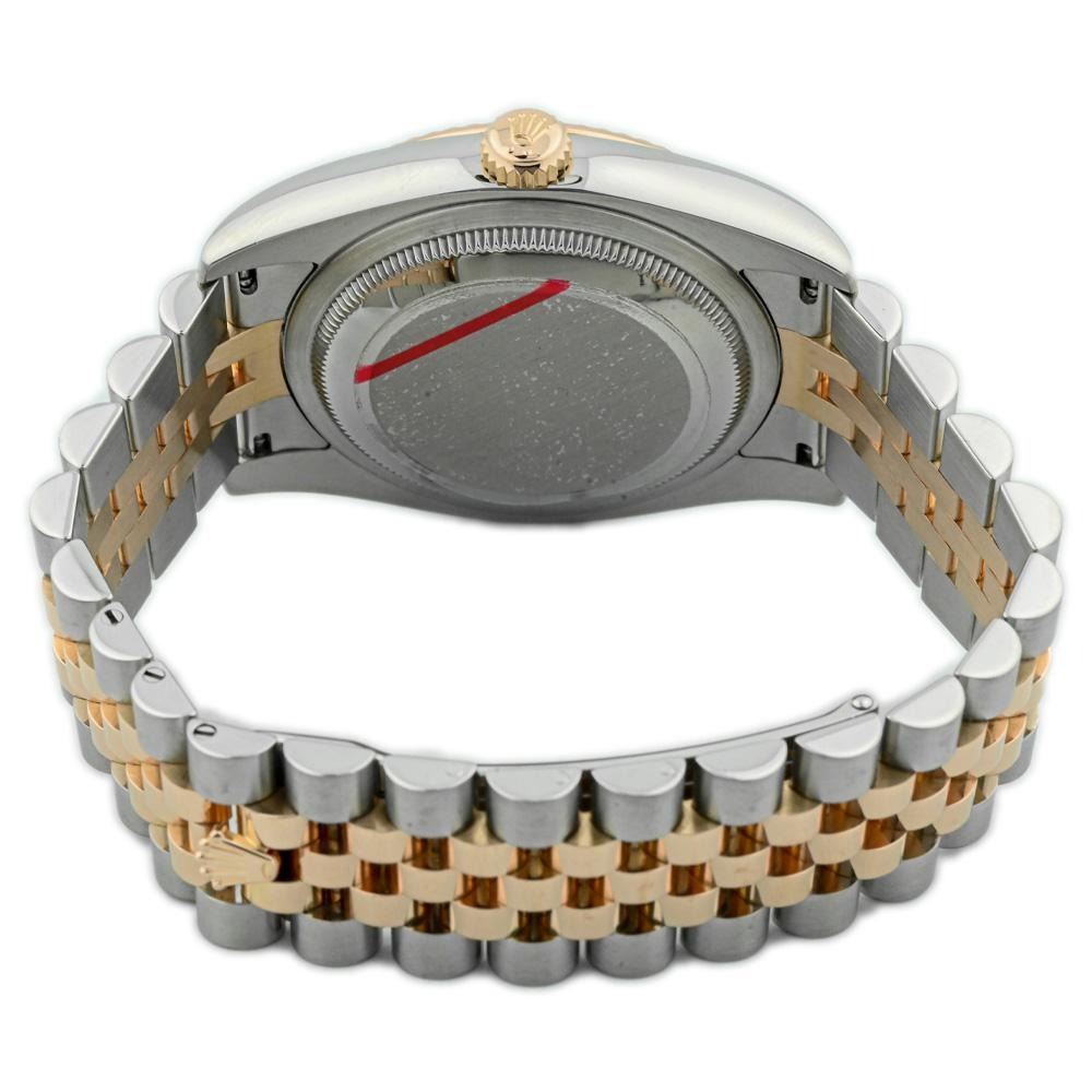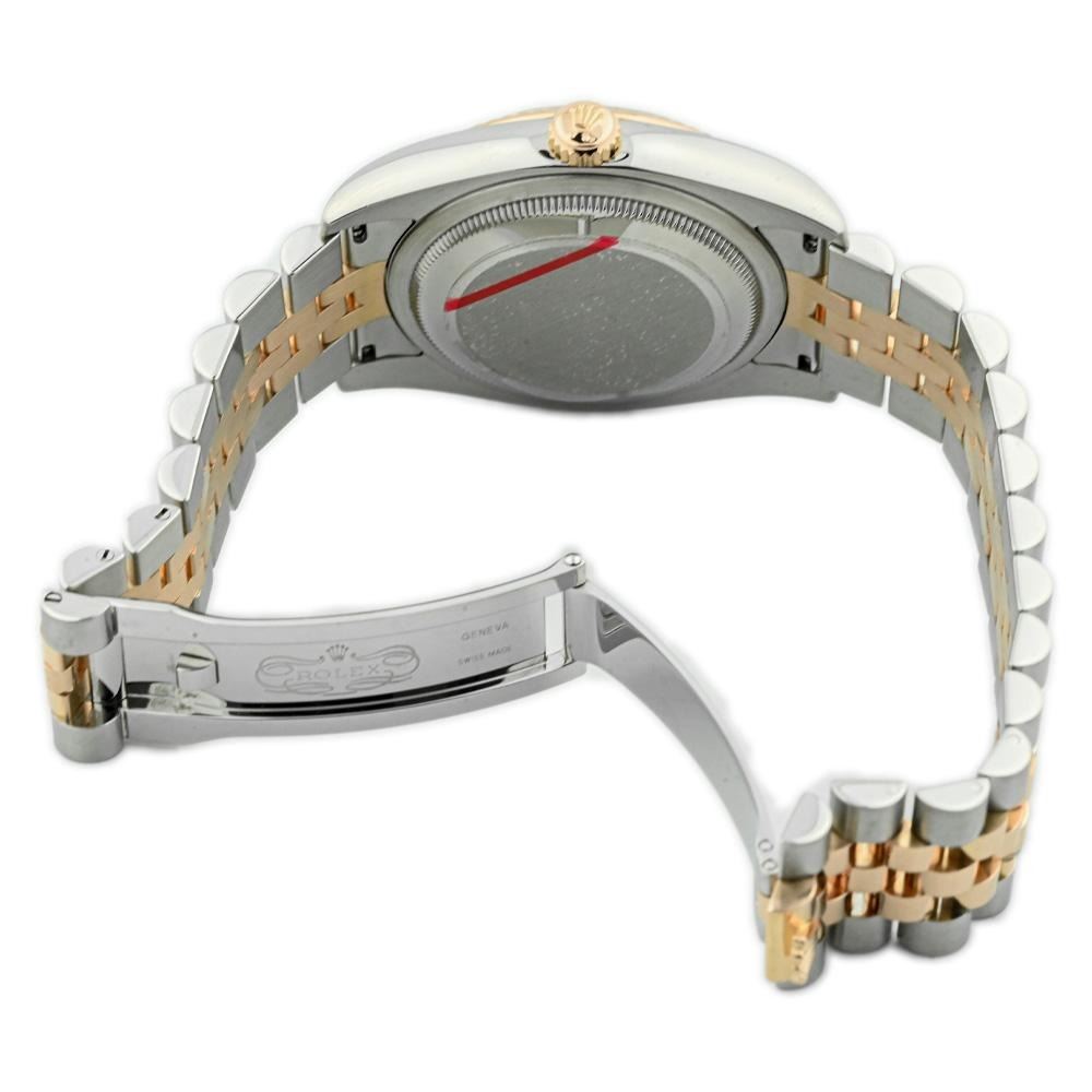 Model: Datejust 36. Reference #: 116231. Case: 18K Rose Gold & Stainless Steel. Case Size: 36mm. Bracelet: Two-Tone Jubilee Bracelet. Dial: Pink Rolex Print Dial w/ Diamond Dot Hour Markers. Bezel: Fluted Rose Gold Bezel. Date Window: 3 O'clock Position w/ Cyclops lens. Movement: Automatic Winding Movement. Water Resistant: Yes 100 Meters/330 Feet. Crystal: Scratch Resistant Sapphire Crystal. Condition: Pre-Owned. Box Included. CIRCA: 2008. All Pre-Owned watches are guaranteed to be 100% genuine. Your watch will come with a 2-year limited warranty, original box, and appraisal.