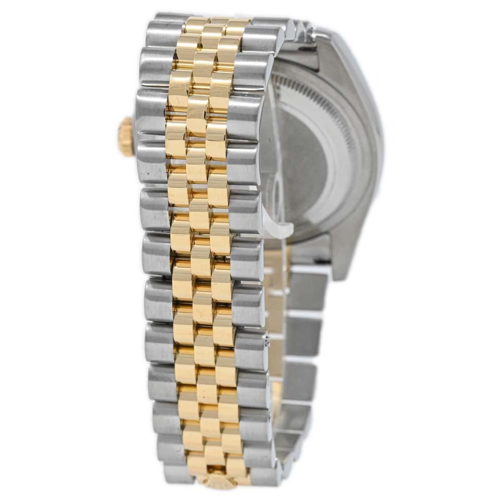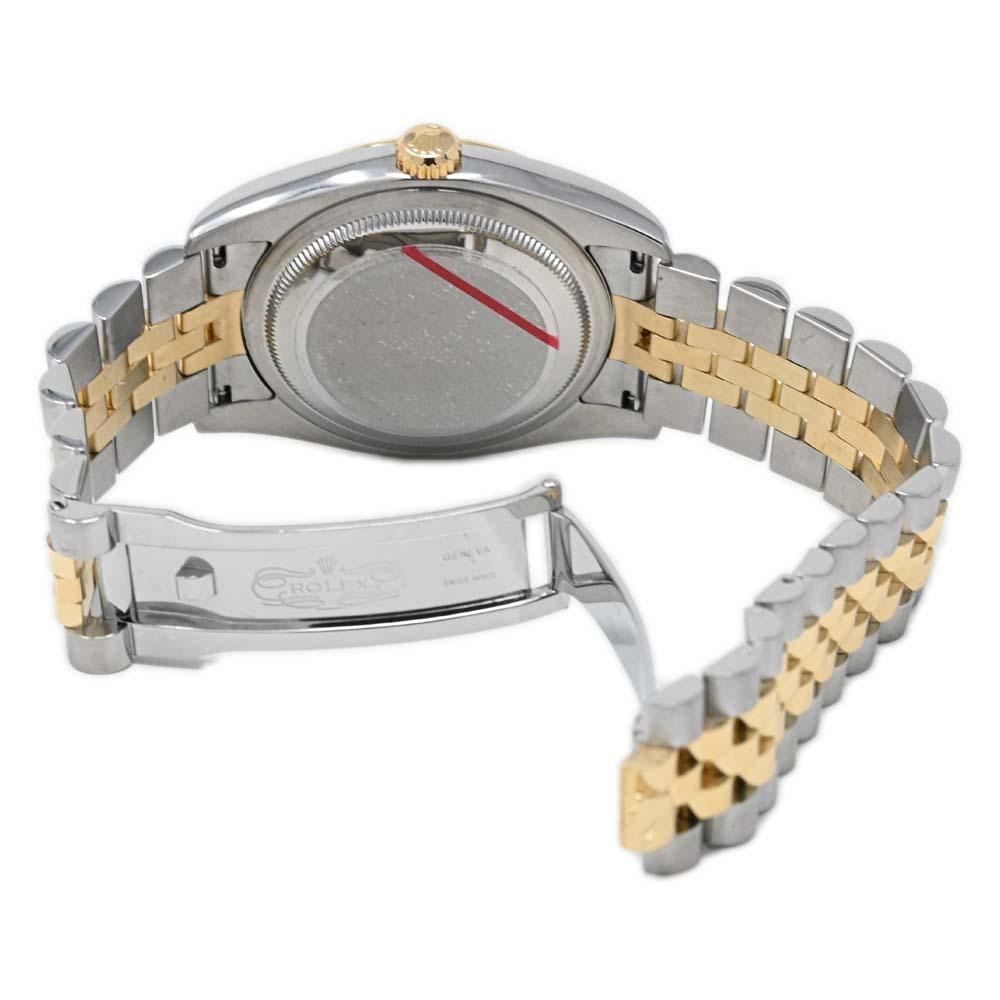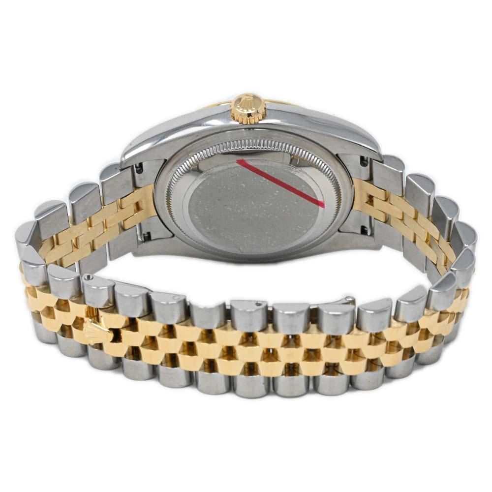 Model: Datejust 36. Reference #: 116233. Case: 18K Yellow Gold & Stainless Steel. Case Size: 36mm. Bracelet: Two-Tone Jubilee Bracelet. Dial: Black Dial w/ Stick Hour Markers. Lume: Luminous Hands & Hour Markers. Bezel: Fluted Yellow Gold Bezel. Date Window: 3 O'clock Position w/ Cyclops Lens. Movement: Automatic Winding Movement; Rolex Calibre 3135. Power Reserve: 48 Hours. Water Resistant: Yes 100 Meters/330 Feet. Crystal: Scratch-Resistant Sapphire Crystal. Condition: Pre-Owned; Light Signs of Wear on the Bezel. Rolex Box Included. Circa: 2007 (M Serial Number). All Pre-Owned watches are guaranteed to be 100% genuine. Your watch will come with a 2-year limited warranty, original box, and appraisal.
