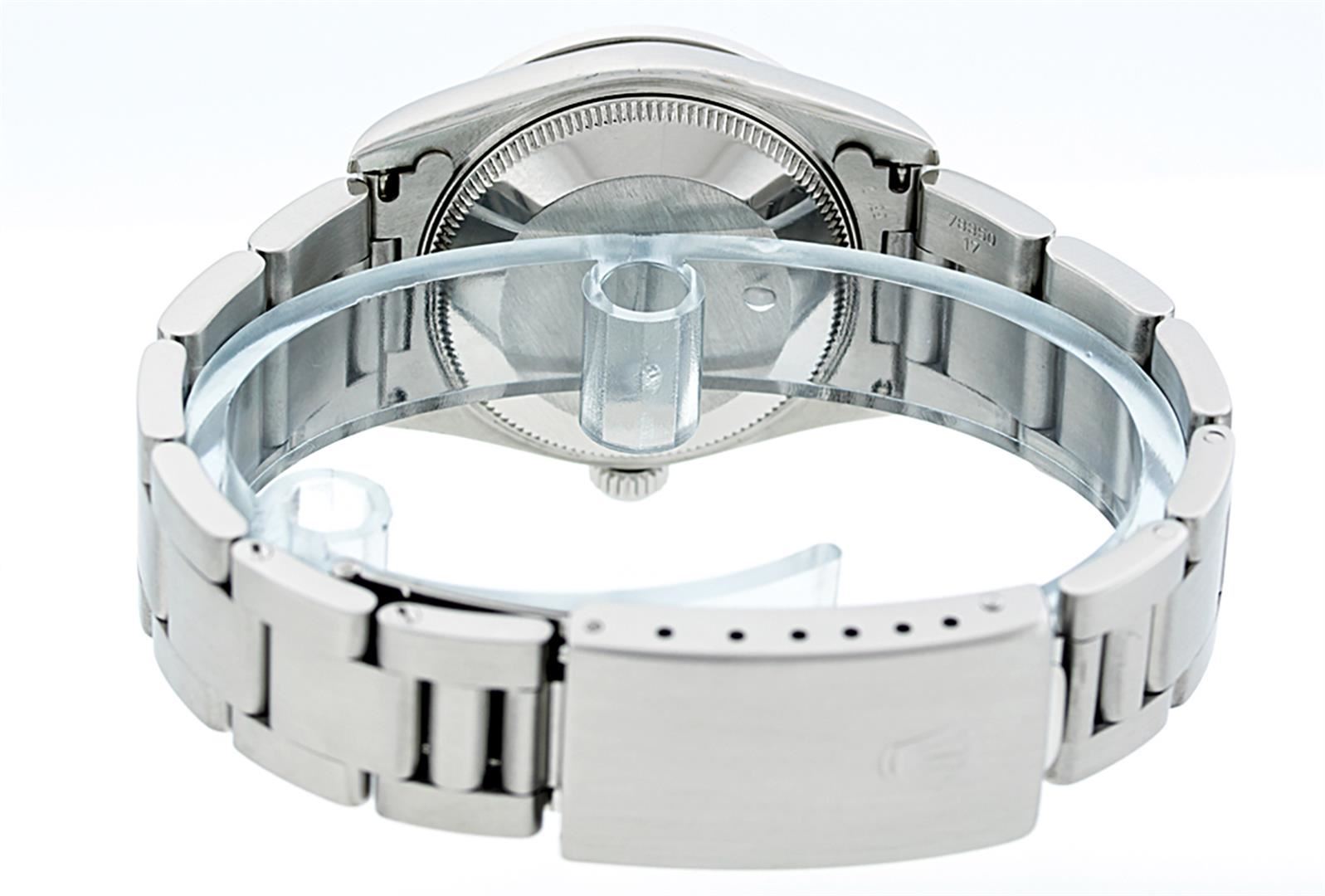 One Womens Midsize Stainless Steel Rolex Datejust Polished, Serviced & Electronically Tested, Stainless Steel Case Case: 31mm, Stainless Steel Crown, Custom Bezel: New 18K White Gold Beadset Diamond Bezel, Diamond Count: 44 Diamonds On Bezel, Color: G To H, Clarity: VS2-SI1. Custom Crystal: New Scratch Resistant Synthetic Sapphire Cyclops Lens. Custom Hands: New Luminecent Hands. Movement: Automatic Winding Movement Caliber 2235. Custom Dial: Mother Of Pearl String Diamond Dial. Diamond Count: 43 Single Cut Diamonds On Dial; Color: G to H, Clarity: VS2-SI1, Date Window: 3 O'Clock Position Date Display, Quickset, Model: Midsize Datejust. Condition: G-6 Extra Fine. Bracelet: Stainless Steel Oyster Band. Bright Polish. 6.0 Inch Length, Adjustable. Standard Clasp, With Rolex Logo. This Watch Has Been Serviced Time Tested And Is In Excellent Condition It Is Free Of All Scratches And Dents.