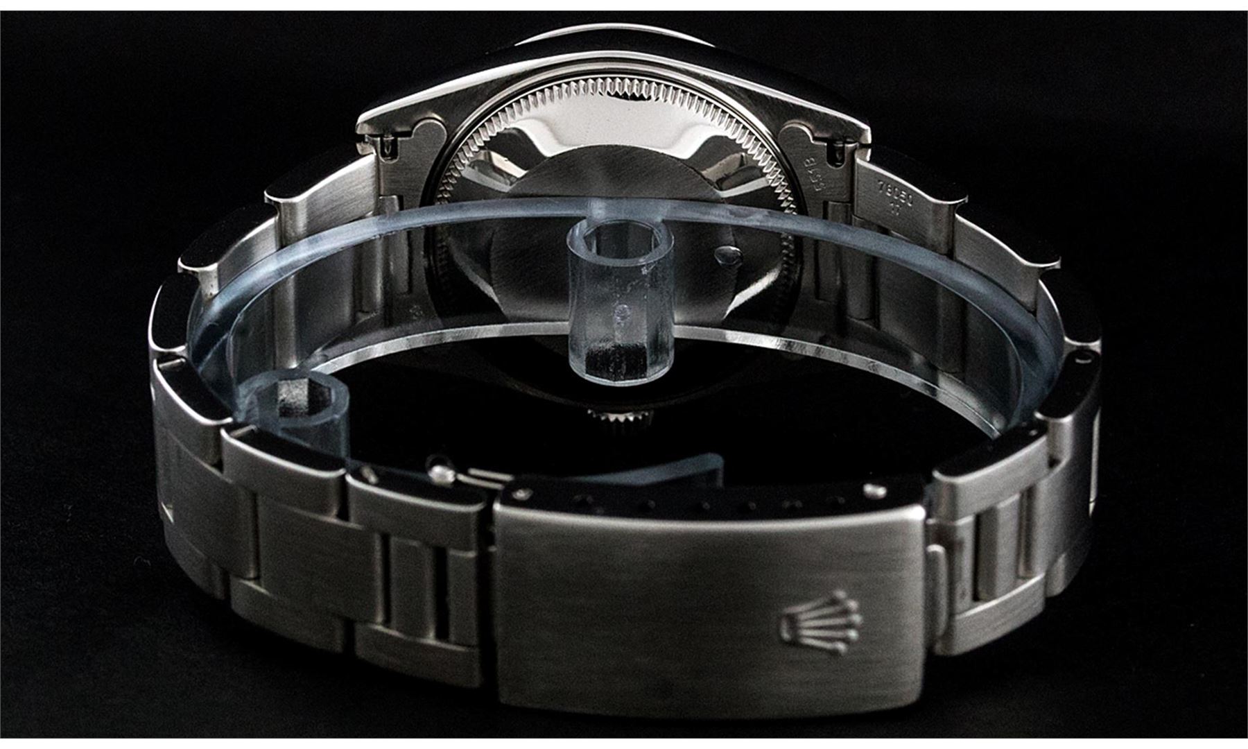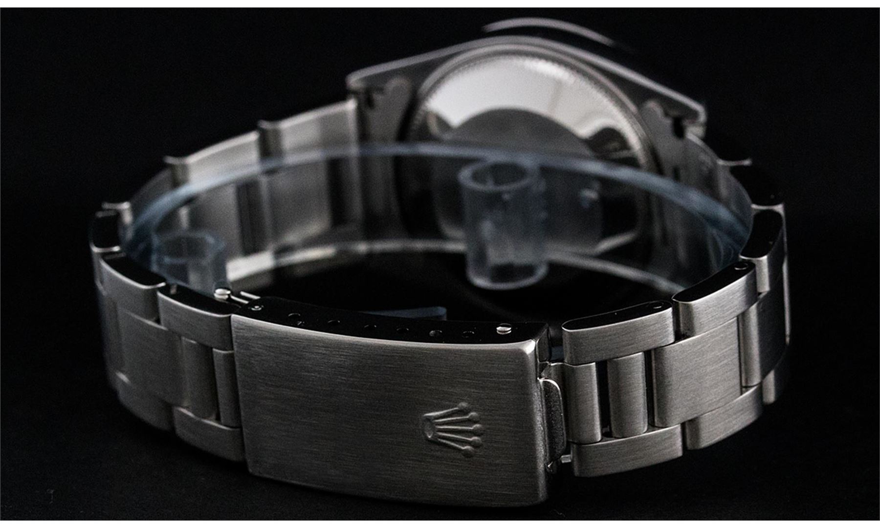 One Women's Pre Owned Midsize Stainless Steel Rolex Datejust Polished, Serviced & Electronically Tested, Stainless Steel Case Case: 31mm, Stainless Steel Crown, Custom Bezel: New 18K White Gold Sapphire Beadset Diamond Bezel, Diamond Count: 40 Diamonds + 4 Sapphires On Bezel. Custom Crystal: New Sapphire With Magnified Date Window. Custom Hands: New Luminescent Hands. Rolex Movement: Automatic Winding Movement Caliber 2235. Custom Dial: Blue With Custom Added Blue String Diamond Hour Markers. Diamond Count: 43 Single Cut Diamonds On Dial. Date Window: 3 O'Clock Position Date Display, Quickset, Model: Midsize Datejust. Condition: G-6 Extra Fine. Rolex Bracelet: Stainless Steel Oyster Band. Bright Polish. 6.0 Inch Length, Adjustable. Standard Clasp, With Rolex Logo. This Watch Has Been Serviced Time Tested And Is In Excellent Condition It Is Free Of All Scratches And Dents.