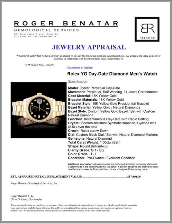 Bracelet Style: 18K Yellow Gold Presidential Bracelet