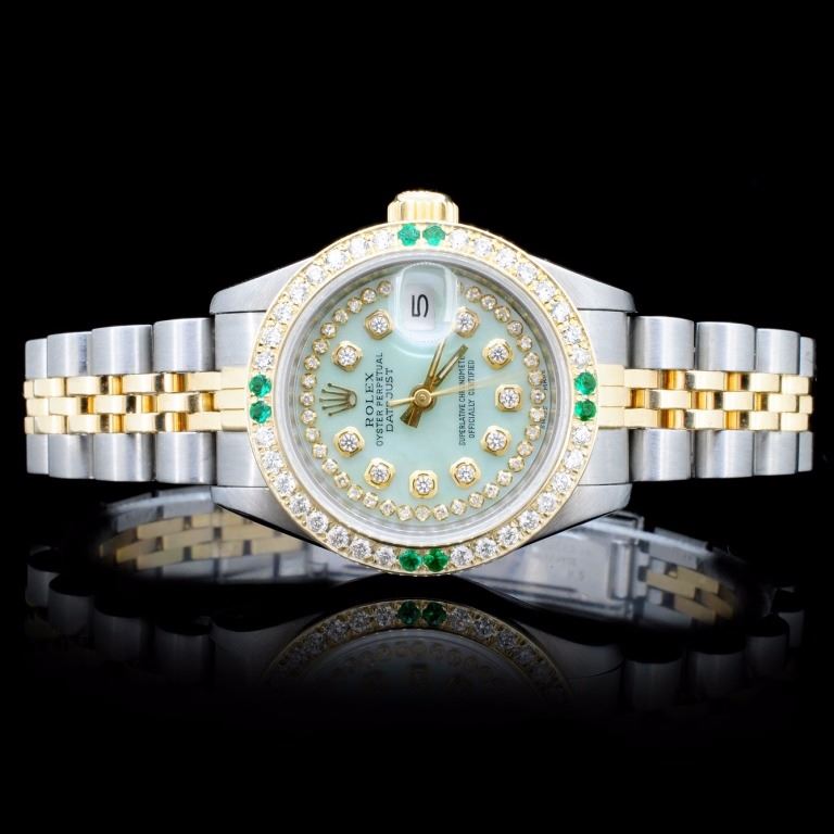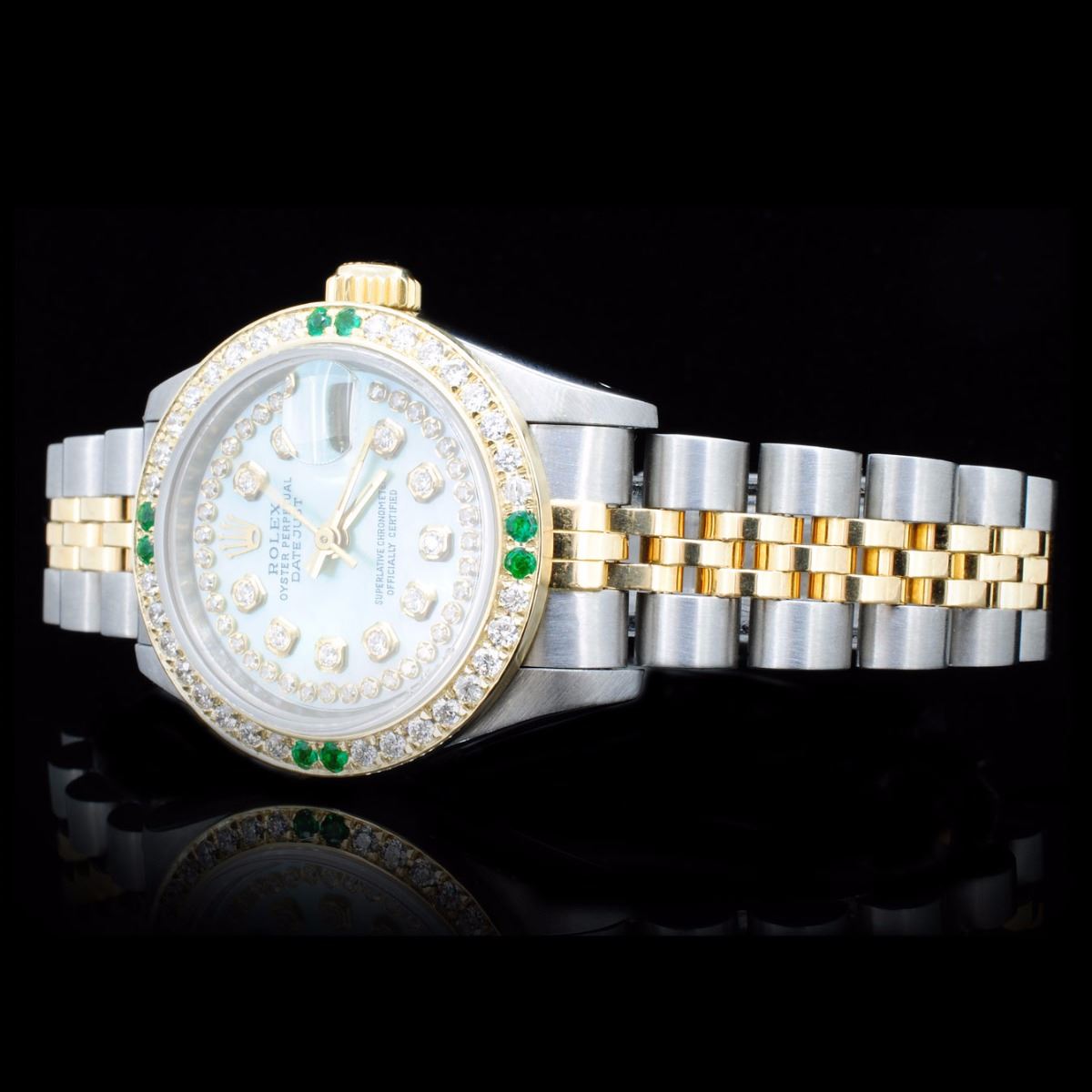 Dial: Custom green mother of pearl dial with diamonds / Set with custom diamond markers