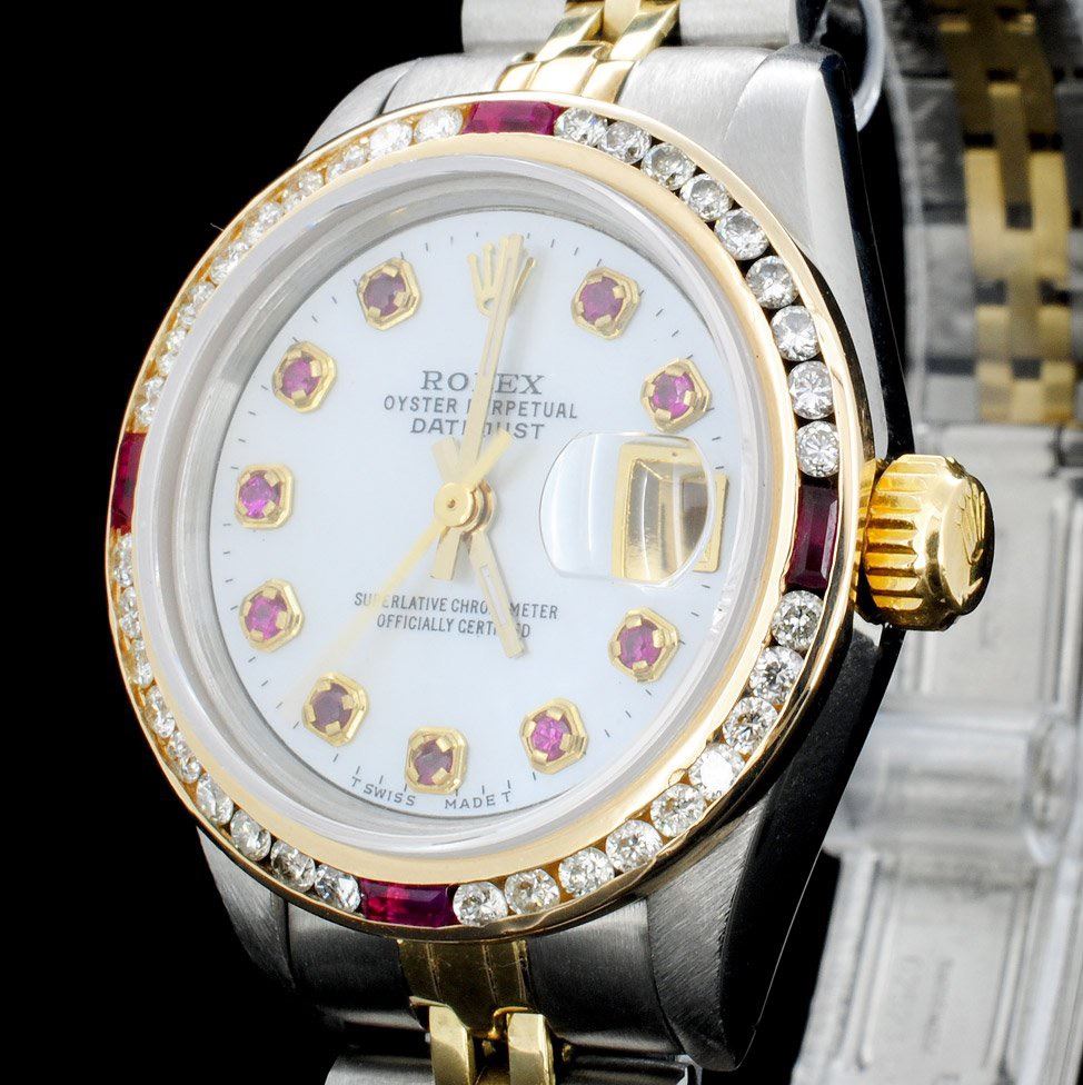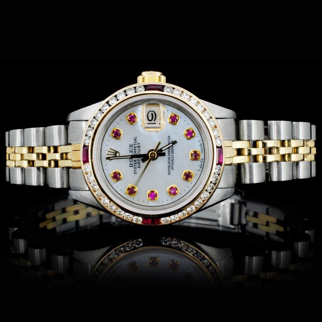 Dial: Custom white mother of pearl dial / Set with custom Rubies markers