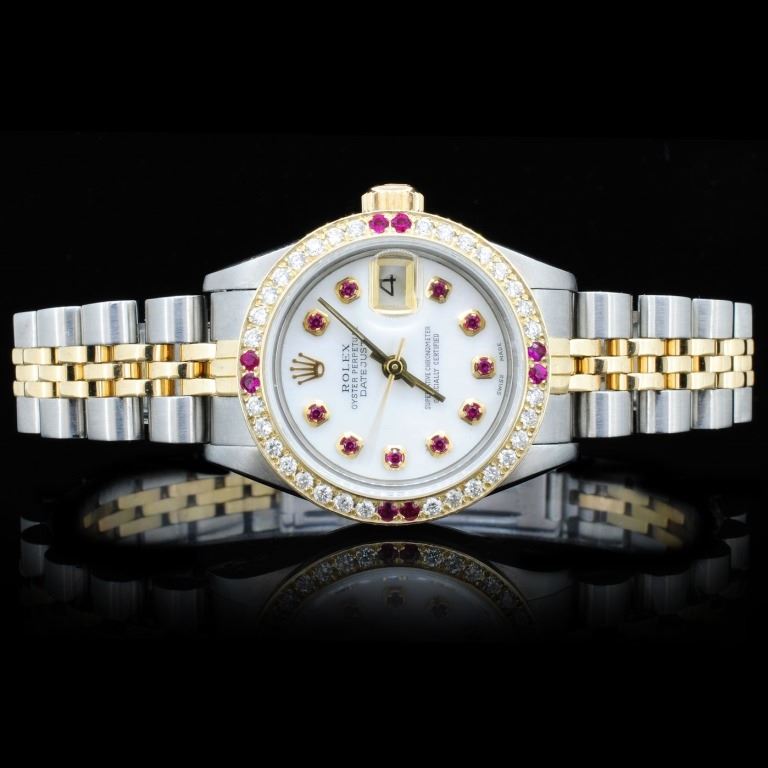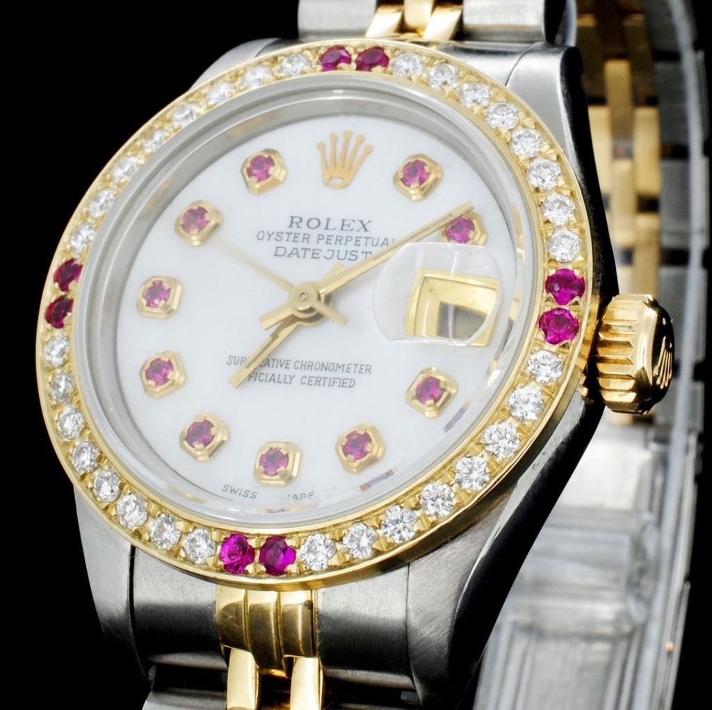 Dial: Custom white mother of pearl dial / Set with Ruby markers