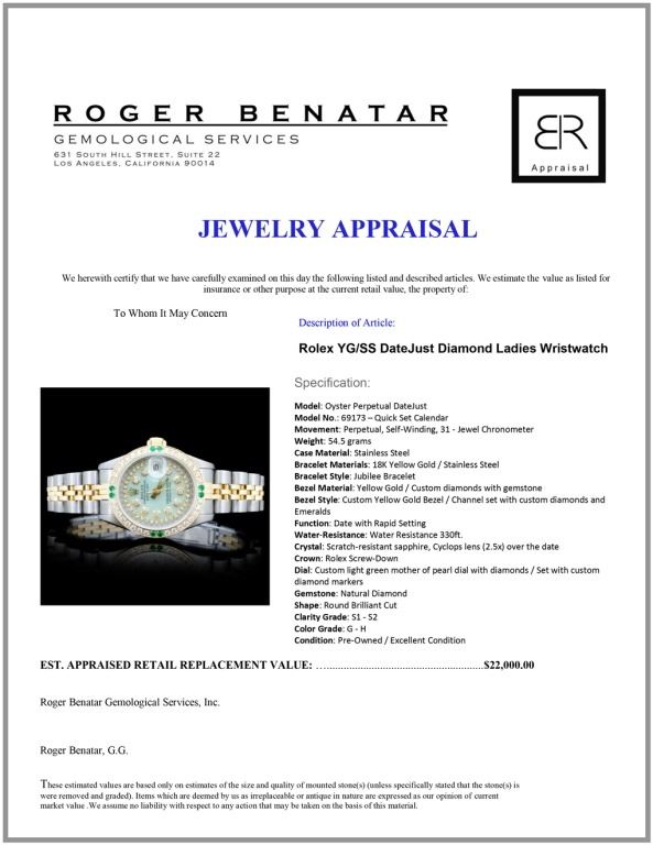 Dial: Custom green mother of pearl dial with diamonds / Set with custom diamond markers