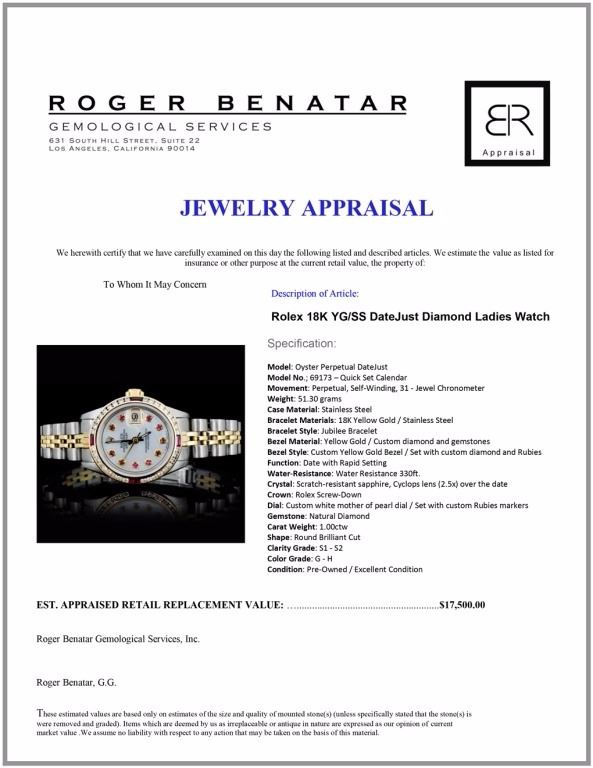 Dial: Custom white mother of pearl dial / Set with custom Rubies markers