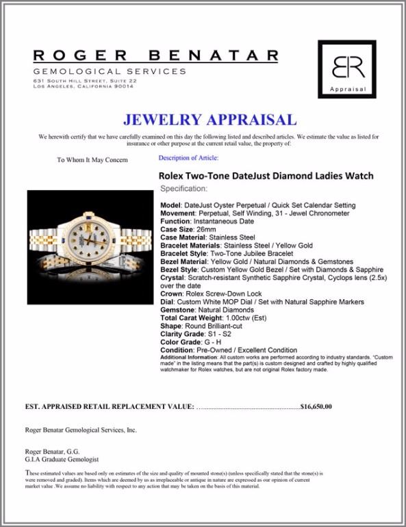 Dial: Custom White MOP Dial / Set with Natural Sapphire Markers