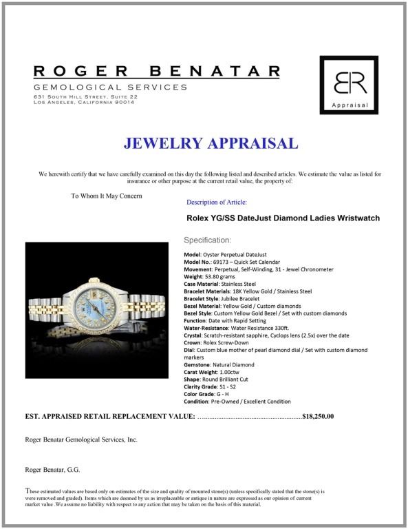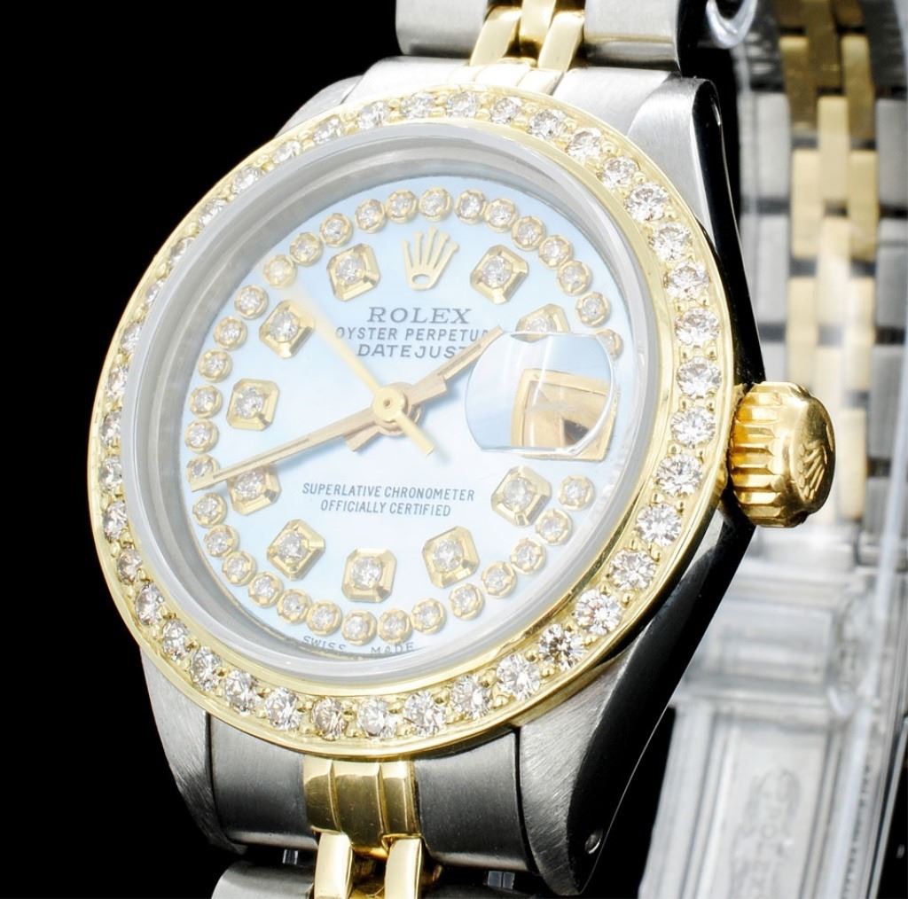 Dial: Custom blue mother of pearl diamond dial / Set with custom diamond markers