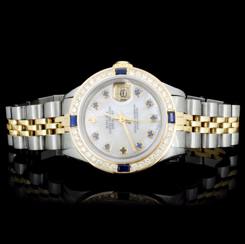 Dial: Custom white mother of pearl dial / Set with custom Sapphire markers