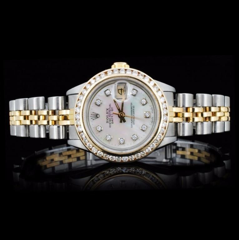 Dial: Custom white mother of pearl dial / Set with diamond markers