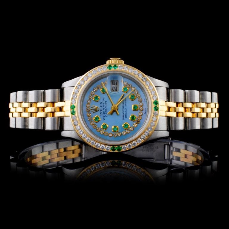 Dial: Custom Blue Color Dial / Set with Custom String Diamond Markers & Emeralds
