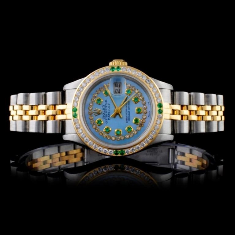 Dial: Custom Blue Color Dial / Set with Custom String Diamond Markers & Emeralds