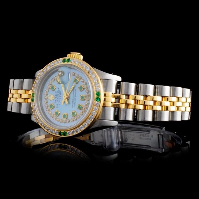 Dial: Custom Blue Color Dial / Set with Custom String Diamond Markers & Emeralds