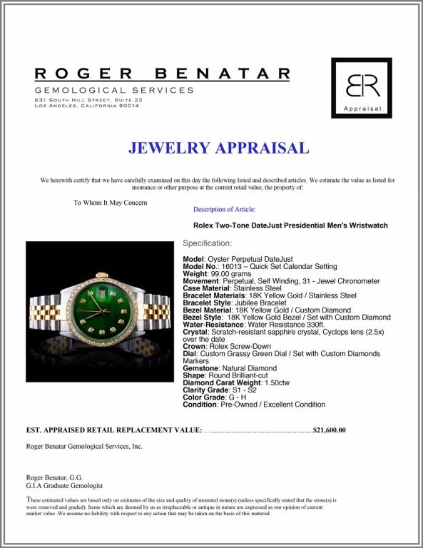 Dial: Custom Grassy Green Dial / Set with Custom Diamonds Markers
