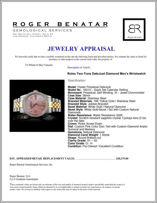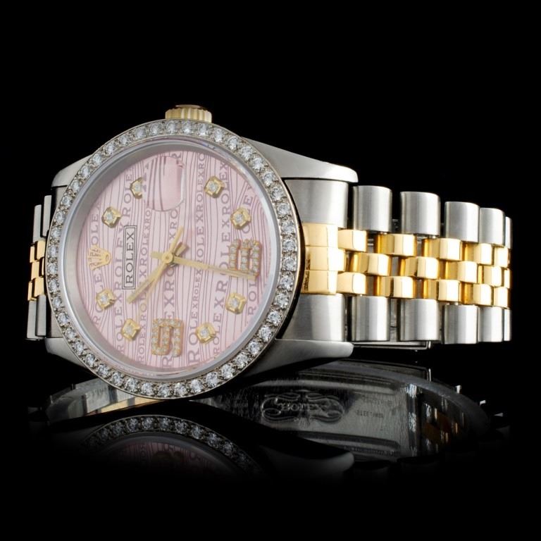 Dial: Custom Pink Color Dial / Set with Custom Diamond Arabic Numeral and Markers