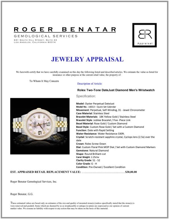 Dial: Custom Floral Pink MOP Dial / Set with Custom Diamond Markers