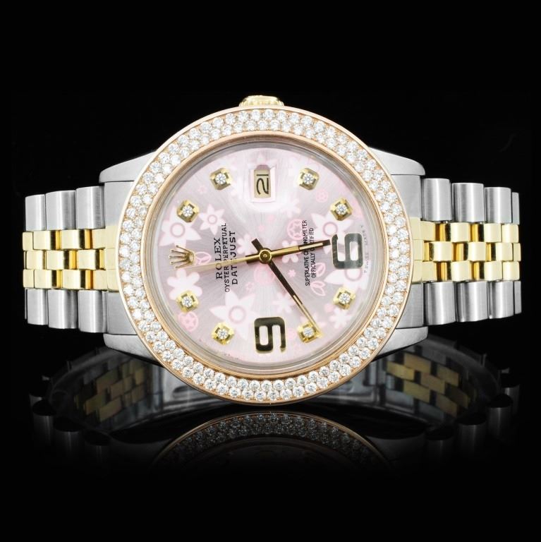 Dial: Custom Floral Pink MOP Dial / Set with Custom Diamond Markers