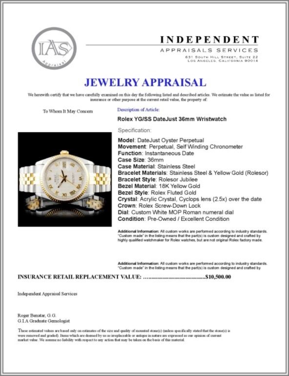 Regarding Appraised Jewelry and Loose Stones - Auctionfarm sends them out to a third party for Retail Replacement Value Appraisals, which are the most common. These types of evaluations are written for insurance needs. This would be the cost to replace the jewelry with an item of equal quality and kind, considered to be the current market price or the replacement value. This type of appraisal is done to protect you in the event of damage or loss of a valuable item. Our appraisals are conducted by independent 3rd Party appraisal firms that utilizes Certified GIA Gemologist. Appraisals should be used for verification of gemstone and/or metal weight, size, and grade only, not actual value. Appraisal value should be considered for insurance purposes only, not actual value, as price varies greatly from retail locations thru out the world. Items should not be purchased with the expectation to resell for appraisal price, or for profit.