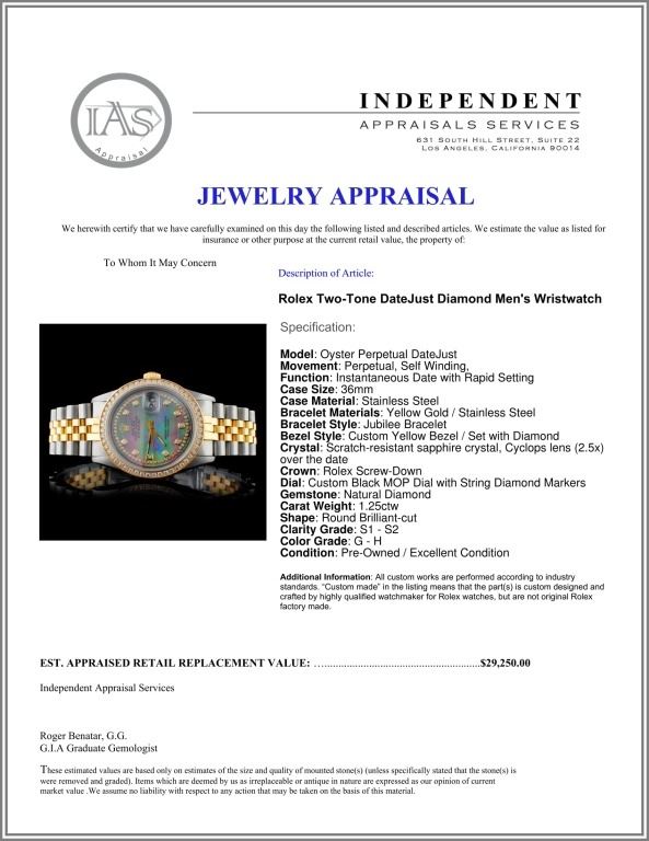 Rolex YG/SS DateJust Diamond 36MM Watch