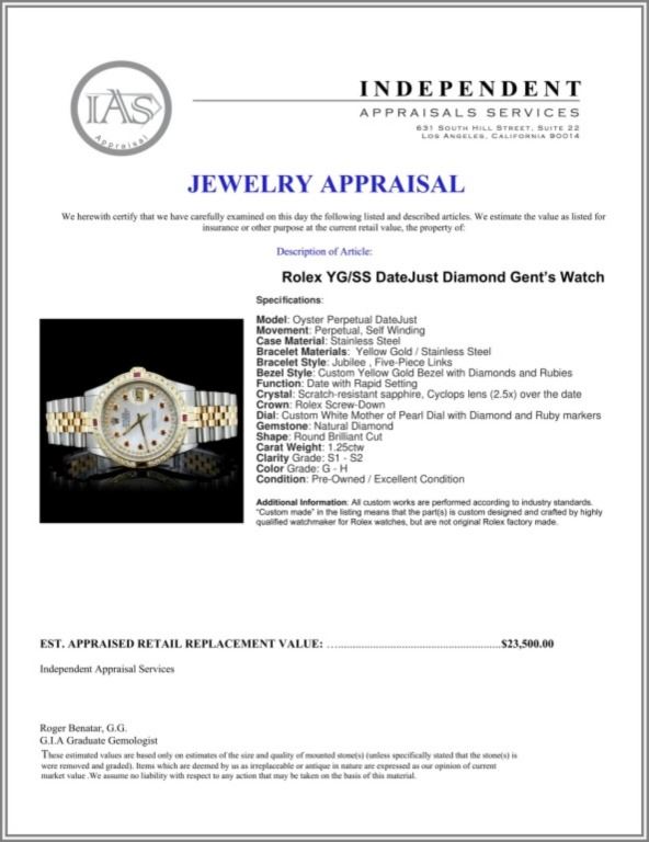 Regarding Appraised Jewelry and Loose Stones - Auctionfarm sends them out to a third party for Retail Replacement Value Appraisals, which are the most common. These types of evaluations are written for insurance needs. This would be the cost to replace the jewelry with an item of equal quality and kind, considered to be the current market price or the replacement value. This type of appraisal is done to protect you in the event of damage or loss of a valuable item. Our appraisals are conducted by independent 3rd Party appraisal firms that utilizes Certified GIA Gemologist. Appraisals should be used for verification of gemstone and/or metal weight, size, and grade only, not actual value. Appraisal value should be considered for insurance purposes only, not actual value, as price varies greatly from retail locations thru out the world. Items should not be purchased with the expectation to resell for appraisal price, or for profit.