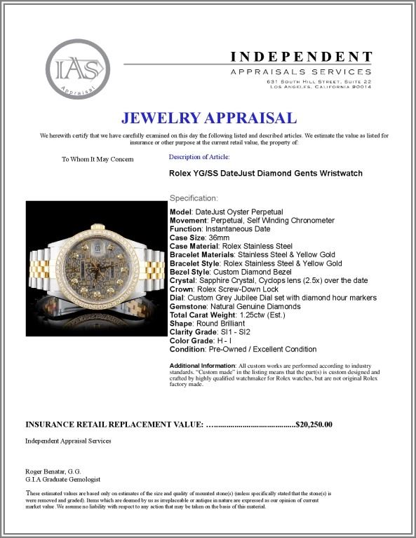 Dial: Custom Grey Jubilee Dial set with diamond hour markers