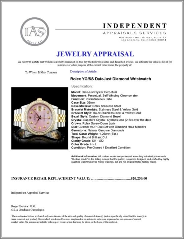 Regarding Appraised Jewelry and Loose Stones - Auctionfarm sends them out to a third party for Retail Replacement Value Appraisals, which are the most common. These types of evaluations are written for insurance needs. This would be the cost to replace the jewelry with an item of equal quality and kind, considered to be the current market price or the replacement value. This type of appraisal is done to protect you in the event of damage or loss of a valuable item. Our appraisals are conducted by independent 3rd Party appraisal firms that utilizes Certified GIA Gemologist. Appraisals should be used for verification of gemstone and/or metal weight, size, and grade only, not actual value. Appraisal value should be considered for insurance purposes only, not actual value, as price varies greatly from retail locations thru out the world. Items should not be purchased with the expectation to resell for appraisal price, or for profit.