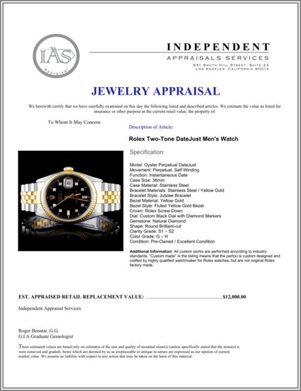 Rolex YG/SS DateJust Diamond 36MM Wristwatch