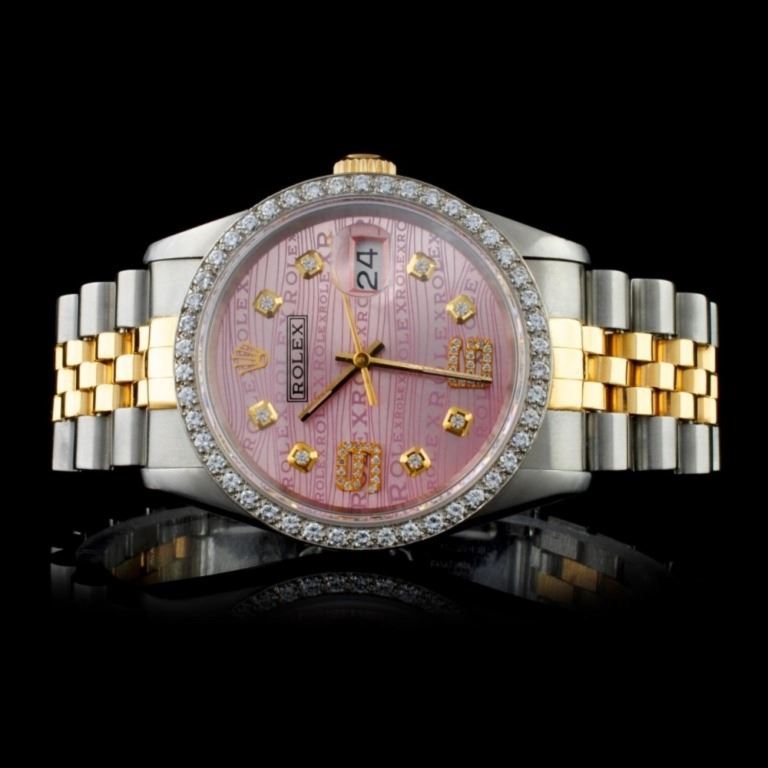 Dial: Custom Pink Color Dial / Set with Diamond Arabic Numeral and Markers