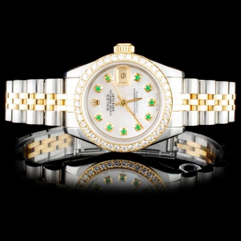 Dial: Custom White MOP Dial / Set with Natural Emerald Markers