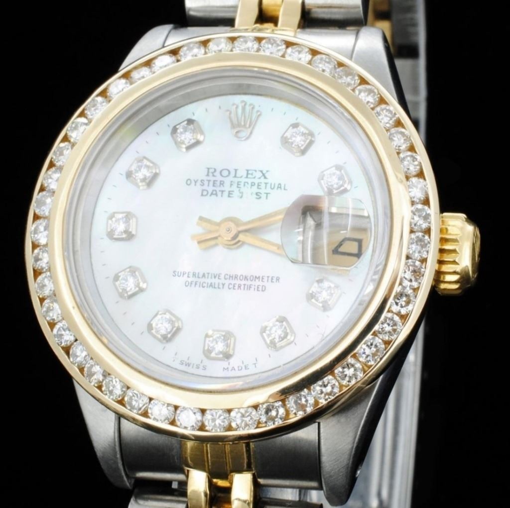 Dial: Custom white mother of pearl dial / Set with diamond markers